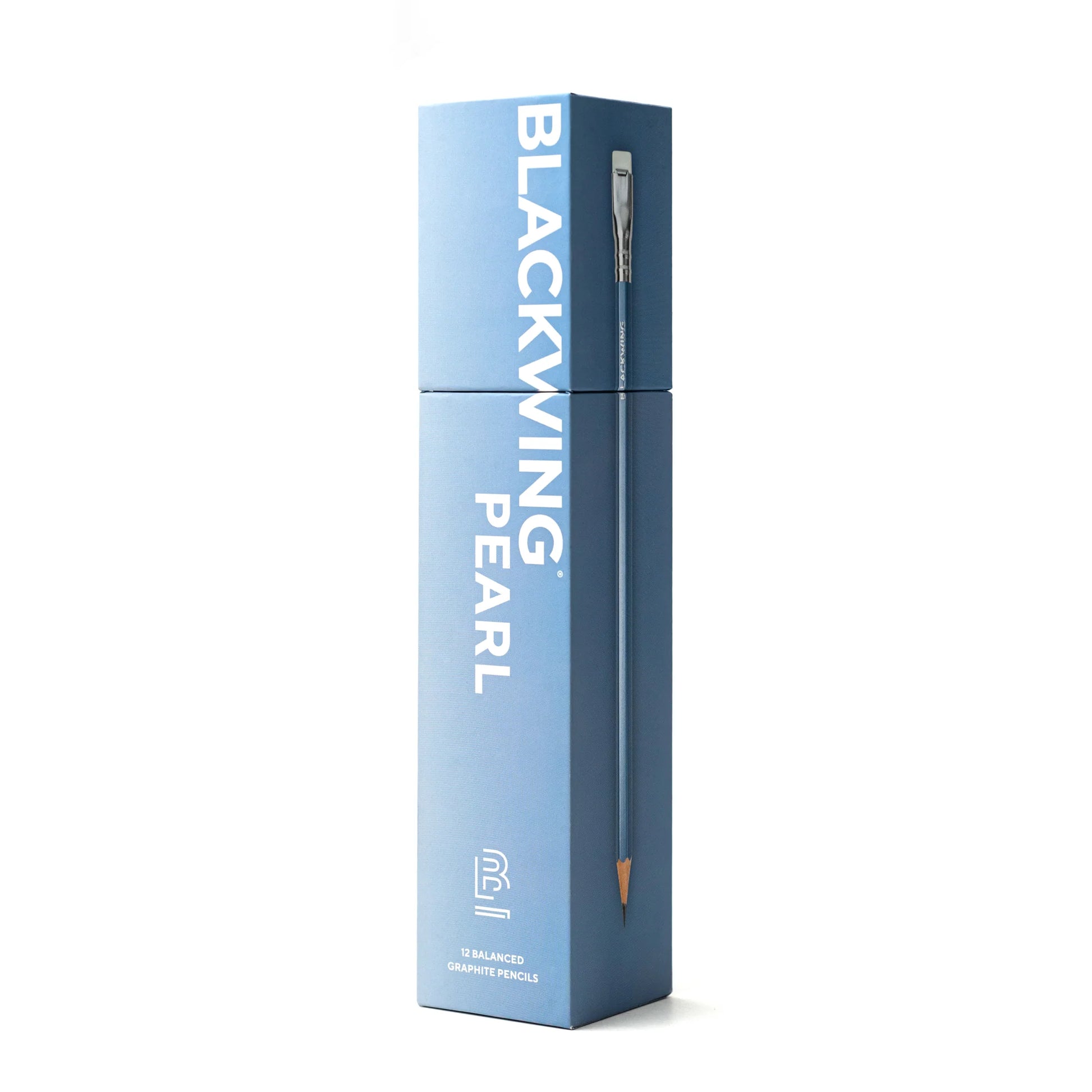 A favorite among calligraphers and illustrators, the Blackwing Pearl includes a balanced and smooth graphite core that is softer than the graphite found in the Blackwing 602, but firmer than the graphite found in the Blackwing Matte. Each pencil features a pearlescent white, pink, or blue finish, our iconic square Blackwing ferrule, and replaceable eraser.