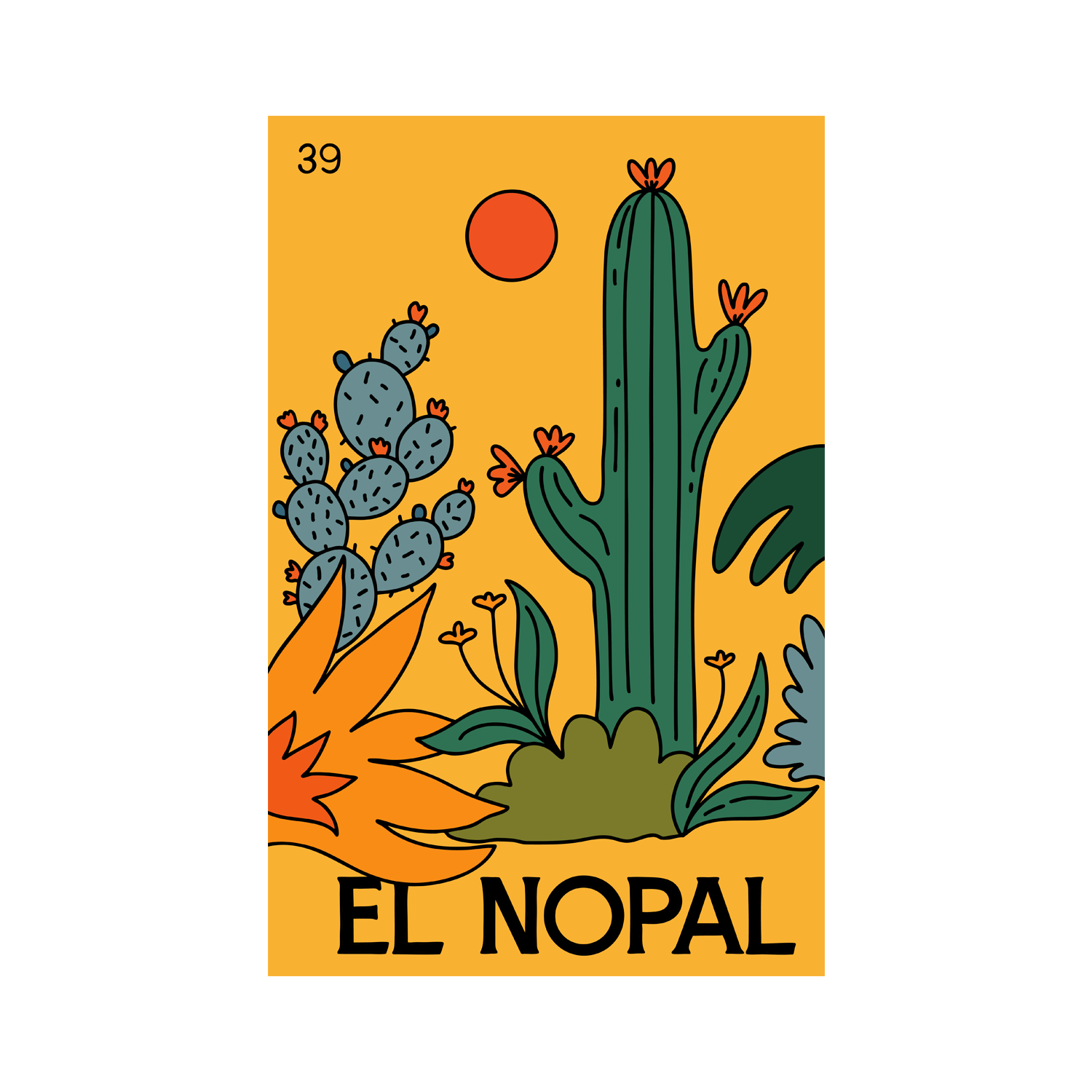 This art print blends Mexican heritage with a modern West Coast twist; the classic loteria game reimagined.
