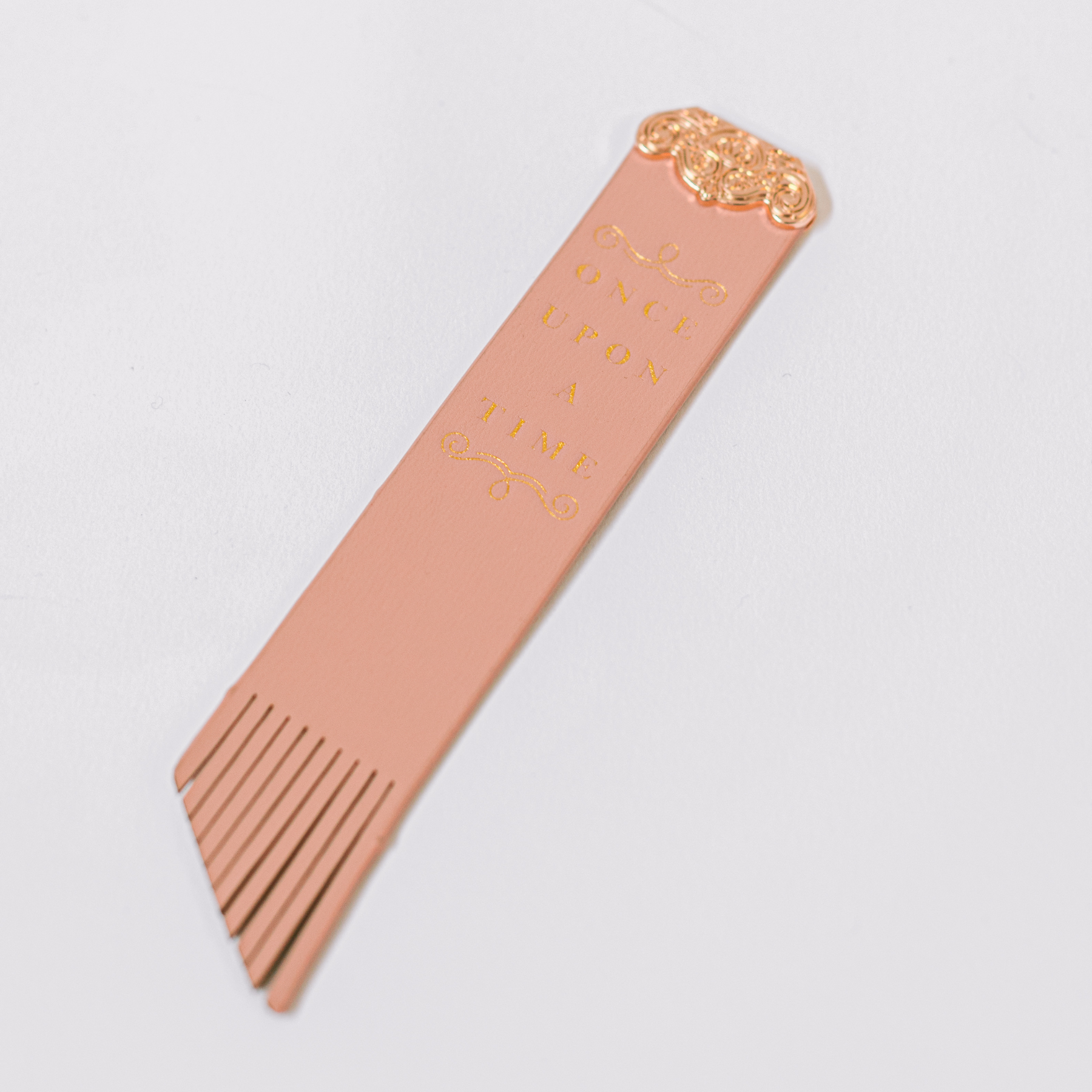 Dive into your next chapter with this enchanting duo! This whimsical bookmark set pairs a sleek gold metal clip with a luxe vegan leather bookmark adorned in shimmering gold foil. The vegan leather piece features the magical phrase "Once Upon A Time," setting the perfect storybook mood. Both bookmarks arrive nestled in a beautifully foil-stamped storybook box (4.625" x 7.875"), making it an ideal gift for book lovers and fairy tale dreamers alike.
