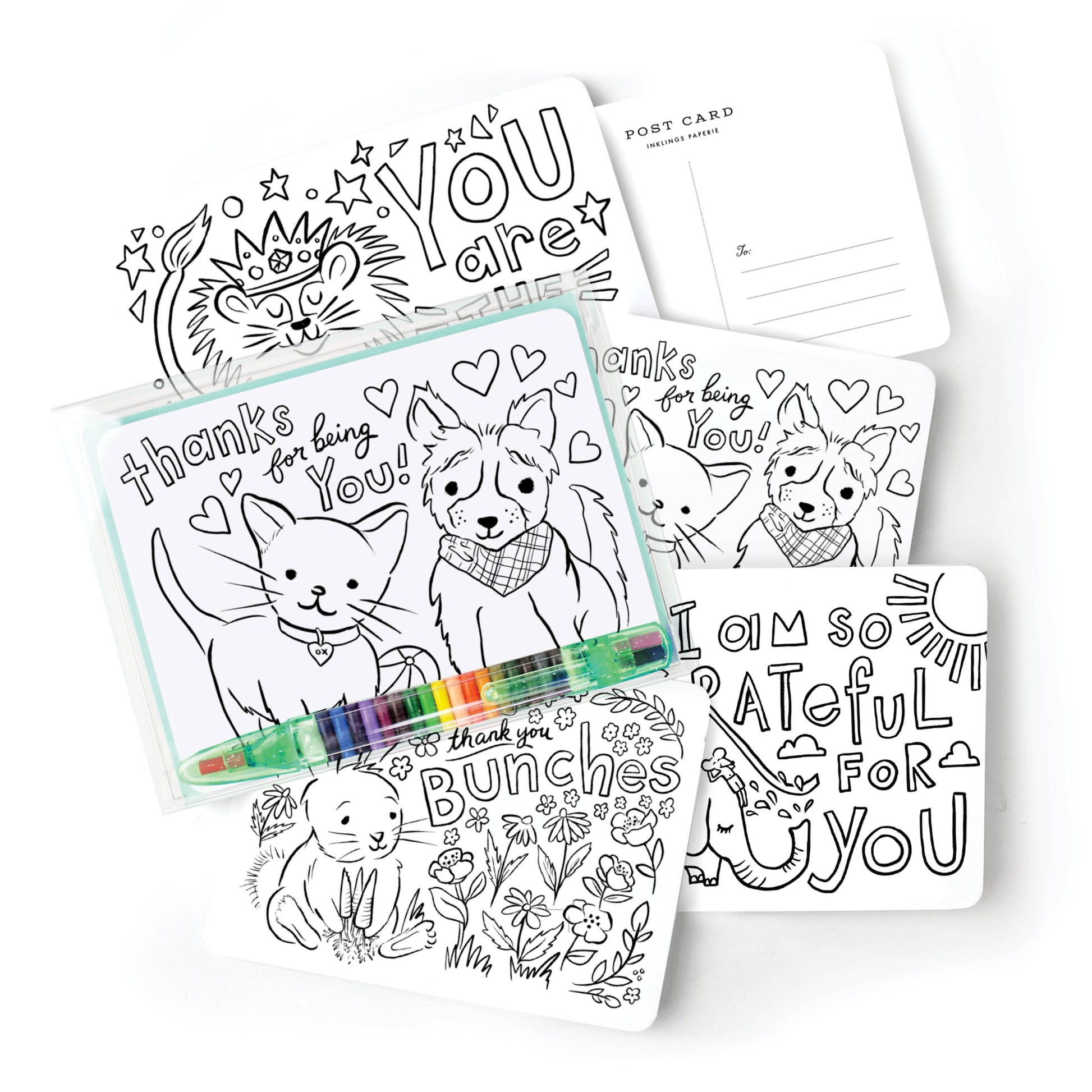 Inklings Paperie - Color-In Postcard Kit - Kids Thank You