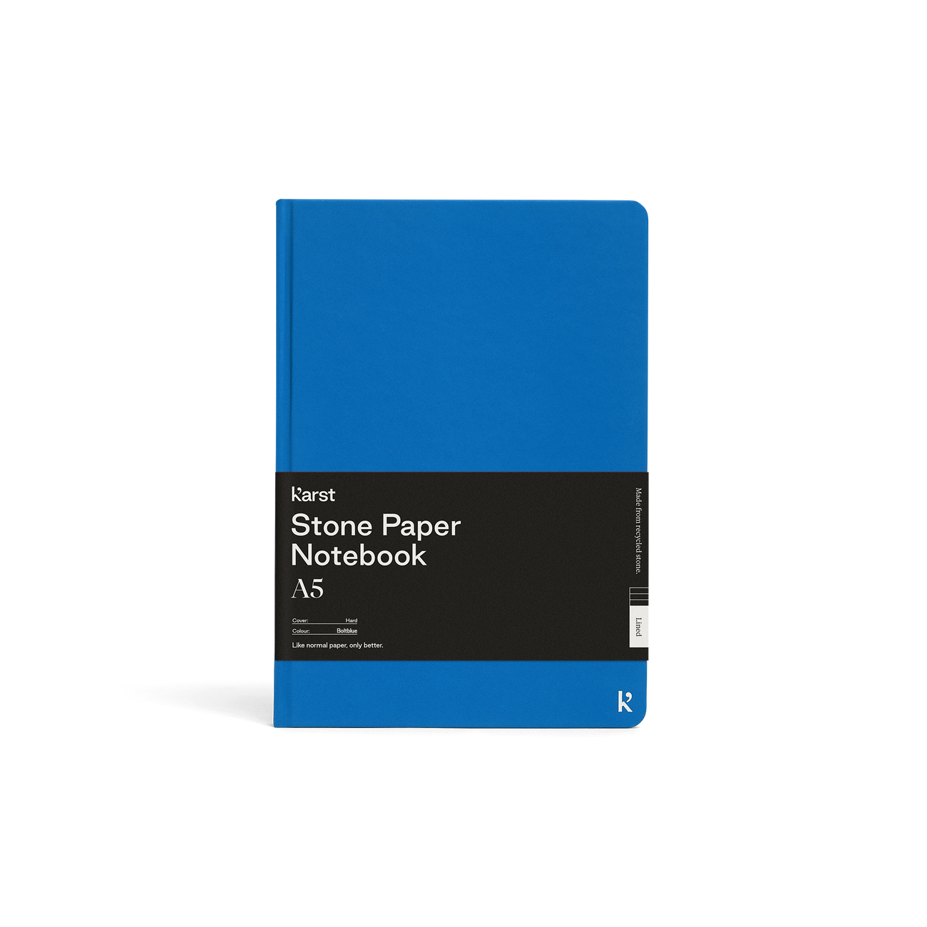 This tree-free A5 Softcover Notebook is made from high-quality, sustainable, and recyclable stone paper with a flexible vegan leather cover. Thoughtfully designed with an expandable back pocket for extra storage, a divider ribbon that doubles as a bookmark for easy reference, and lay-flat binding for comfortable writing. The perfect low-tech companion to your high-tech devices.