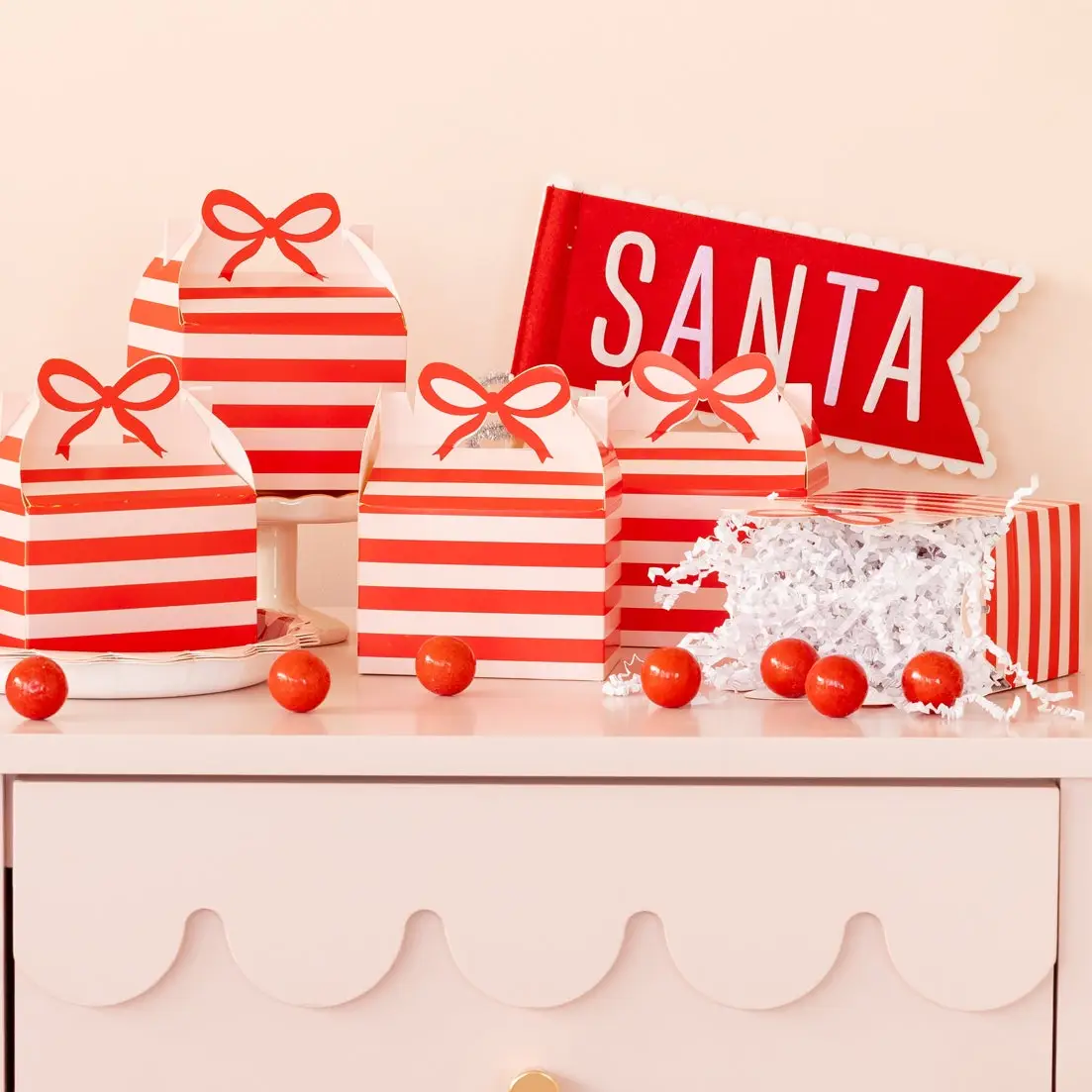 Add a festive flair to your holiday celebrations with these red and pink gable boxes, accented with a charming bow. Perfect for packaging Christmas treats, they bring a fun and lively touch to any party, making your gifts as joyful as the season itself.