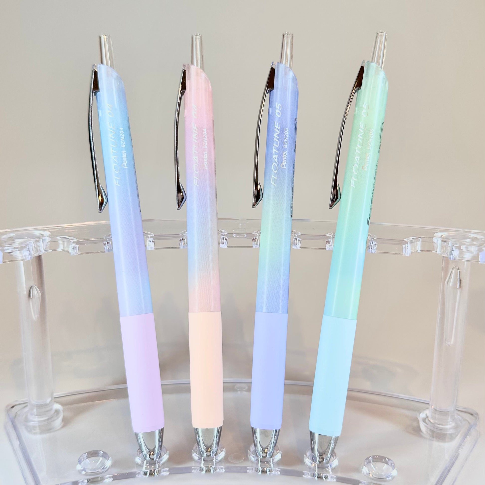 This limited-edition Airy Design pen features black ink and a softly colored barrel that becomes increasingly translucent near the clear push button.