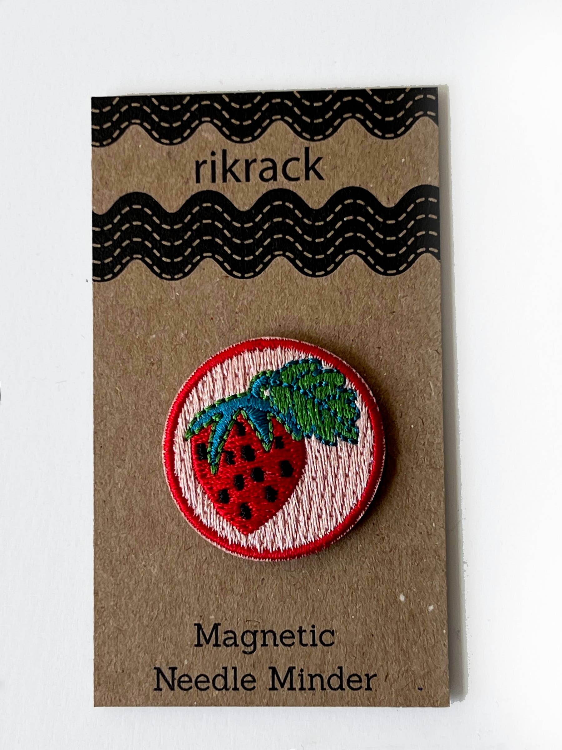Meet your new embroidery best friend—the Strawberry Embroidery Needle Minder! This adorable magnetic patch keeps your needle safe and sound while you stitch. Here's how it works: the embroidered minder has a built-in magnet that pairs with a separate magnet attached to the back of your project. Rest your needle on top and it stays exactly where you left it. At 1.25 inches round, it's perfectly sized for any needlework. Comes beautifully packaged on a card—ideal for gifting to fellow fiber artists!