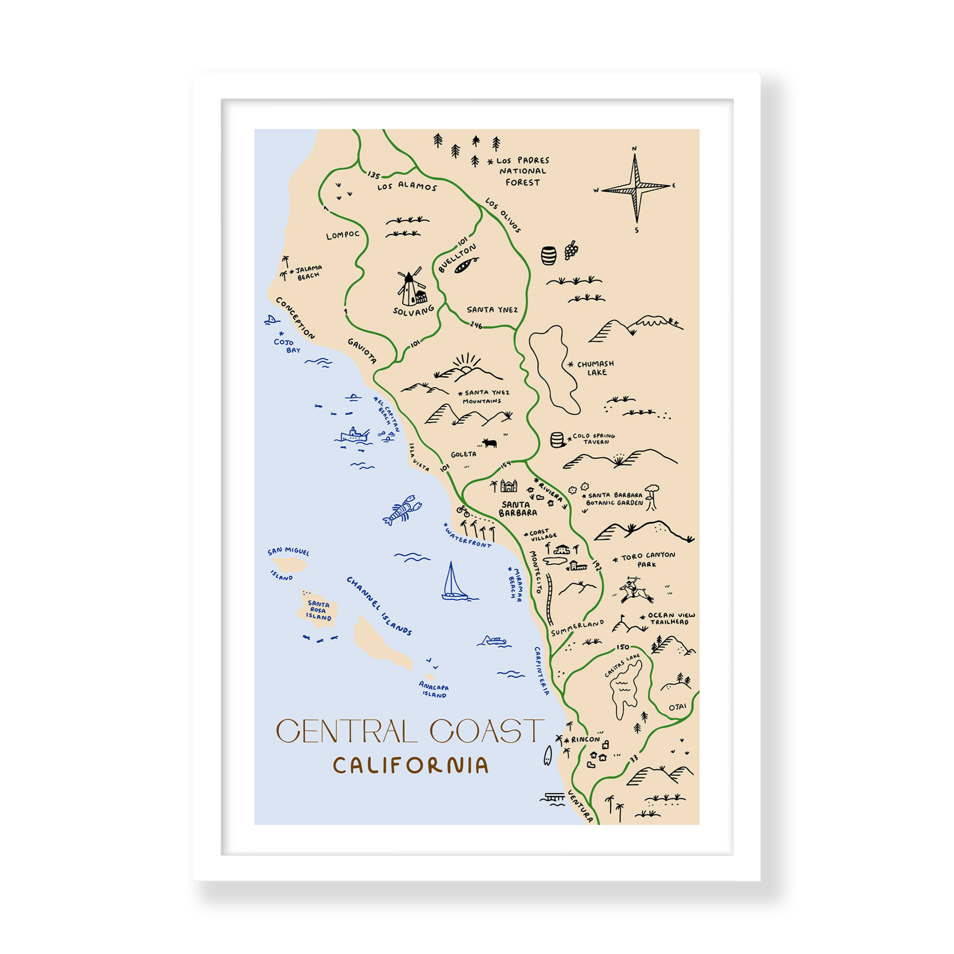 Pack a snack, grab your shades, and let’s hit the Central Coast. Wind your way through wine country, beach towns, and whale-dotted waters — all the magic of California’s golden middle in one playful design.